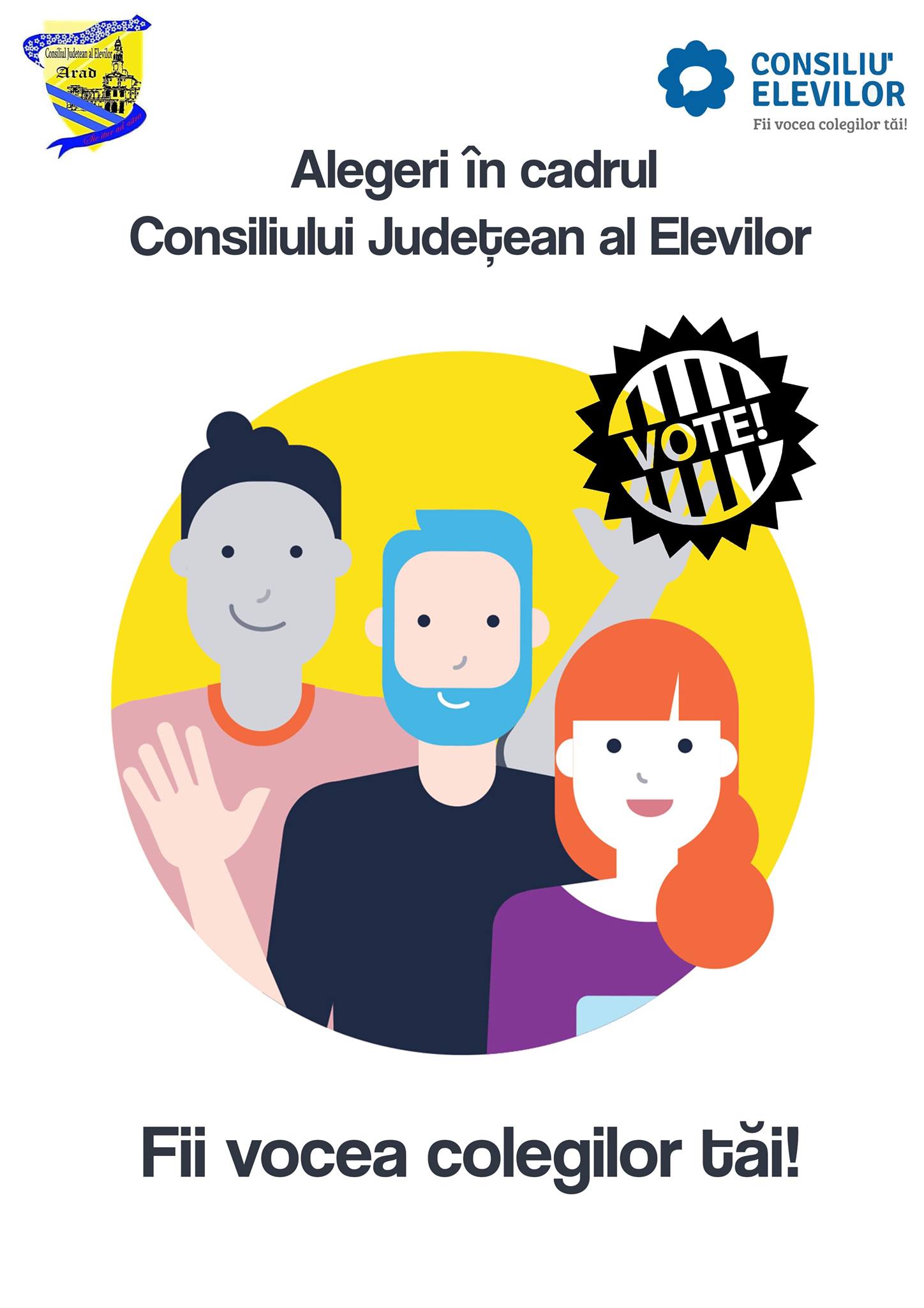 alegerile pentru funcțiile vacante din cadrul Biroului Executiv al Consiliului Județean al Elevilor Arad și din cadrul Departamentelor;
