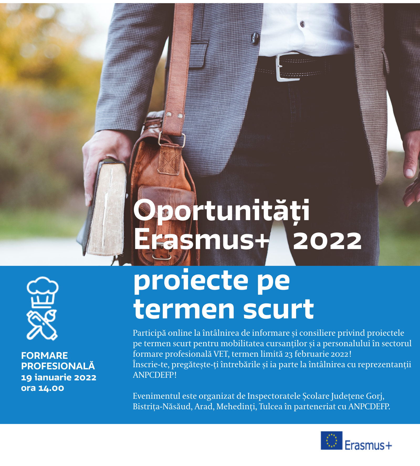 Sesiunea se adresează școlilor care pot derula proiecte în sectorul formare profesională VET. Detalii în atașament.