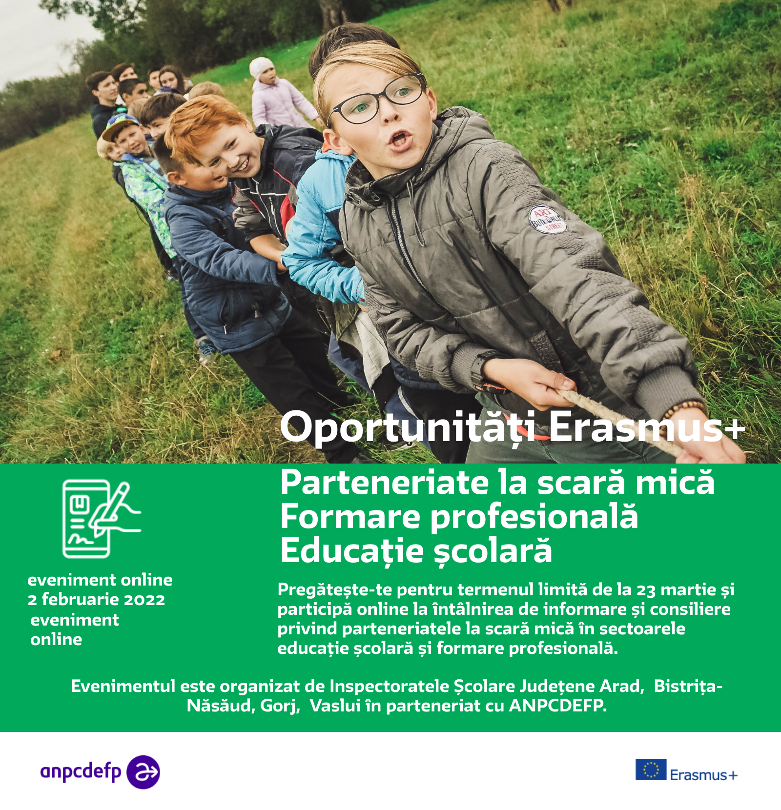 Vă invităm la Sesiunea online de informare oportunități Erasmus+ Acțiunea cheie 2, Parteneriate la scară mică/de mică anvergură.