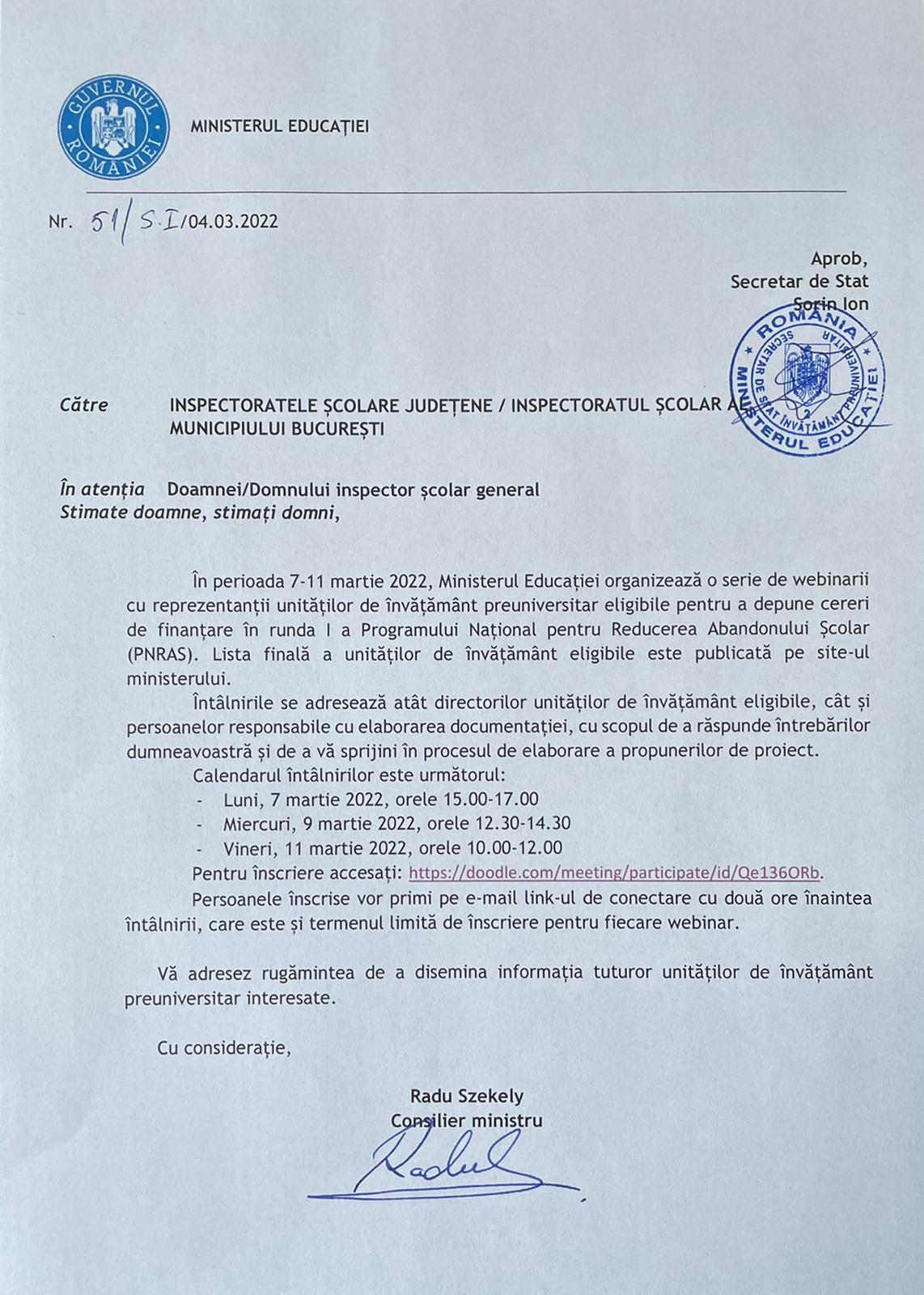 Comunicarea cu institutiile de invatamant din judetul Arad